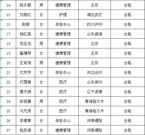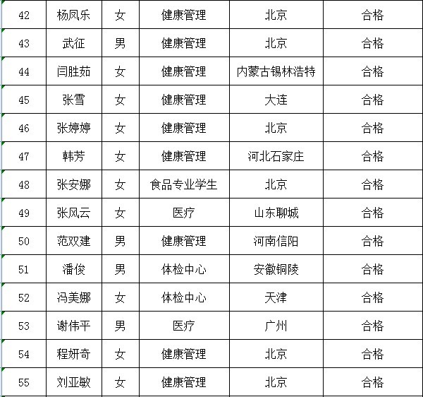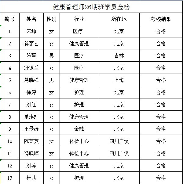 全国第26期健康管理师班80名学员顺利通过考试,获得由国家人力资源和社会保障部颁发的证书,健康管理师通过名单公布的那一天,有人喜极而泣,因为有些人付出了很多汗水,有些人经常加点复习所学的知识,就为了这一天。看到自己的名字在公布栏中,又是激动,又是兴奋。