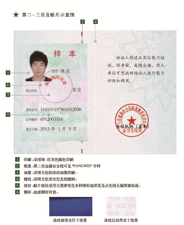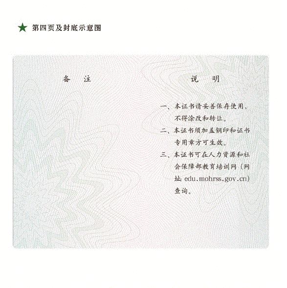 2013年,人力资源和社会保障部教育培训中心《健康管理师岗位能力证书》新版样式说明。