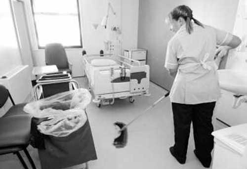 对此,英国公立医院加大力度保证医院卫生及消毒情况。全国各地医院的门诊和住院部每天至少要清扫两次。与患者频繁接触的区域,比如候诊大厅里的坐椅、电梯按钮、门把手以及各种桌面,更是被列为重点消毒对象,医院要求清洁工每隔10分钟就严格消毒一次。同时,医院还在门诊大厅、走廊、收费处及病房内每张病床旁边安装了按压式酒精消毒液,以方便患者、家属以及医护人员随时使用。
