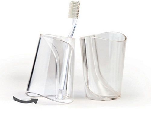 刷牙杯翻身就是牙刷架。独特的弧线设计,让杯子口更容易通风,还能减少细菌滋生。杯子一转,又能节省空间,放置牙刷,一举两得。