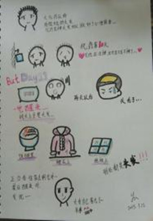 除此之外,杨蒙还画了“记一次很不爽的抽血经历”、“记第27次骨穿”、“三八妇女节”等,她给这些手绘起名叫“包子的抗癌日记”。为什么叫包子?杨蒙说,同学们都在外面学习游玩,增长见识,而自己只能困在病房里,在各种激素的摧残下,自己的脸经常肿得像包子。