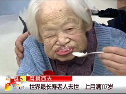 另据报道,美国阿肯色州老妪格特鲁德·韦弗本月初刚获得全球最长寿老人“头衔”,然而6日,她在当地一家高级护理机构去世,享年116岁。全球长寿老人年龄认定机构、总部设在洛杉矶的老年医学研究组织说,韦弗生于1898年7月4日。“前任”最长寿老人、117岁的日本人大川美佐绪(前译大川操)1日去世后,韦弗成为全球最长寿老人“头衔”的“接班人”。