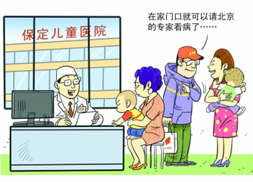 目前每周都会有北京的儿科专家到河北省出诊。一张“北京儿童医院集团——河北省儿童医院——县级儿科协作医院”三级儿科诊疗网正在铺设中。北京的儿童医院日前透露,今年将还计划托管保定儿童医院。