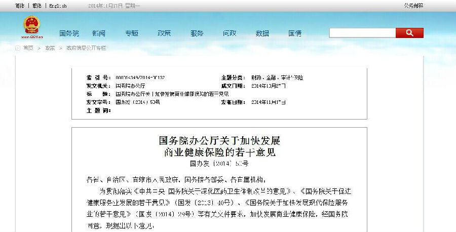 国务院发文促进商业健康保险发展 引导投资健康服务产业