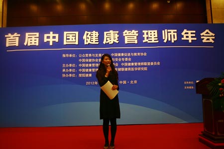 首届中国健康管理师年会,是健康管理师的盛会。2005年10月健康管理师被劳动部公布为第四批新职业,2005年12月的首批健康管理师培训,到今天走过了七个年头。从2012年11月11日开始,我们健康管理师有了一个交流学习、展示自己的平台,所以,我们应该记住这个特殊的日子。祝愿大家在五年以后,十年以后,都成为健康箮理学专家,健康管理工作专家!