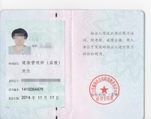 健康管理师等级分为中级健康管理师和高级健康管理师,岗位能力证书是由中华人民共和国人力资源部与社会保障部教育培训中心颁发的权威证书。