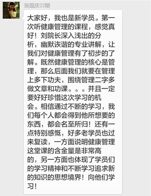 22期“健康管理+”大健康产业特训营(精华班)第一轮2天精彩绝伦的讲课已经落尾,即便如此,小编依然要保持充足的工作状态,为大家分享此次参加培训学员的收获!