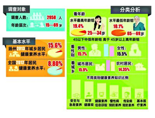 据悉,我国从2008年开始做居民健康素养水平监测,2008年的数据为6.48%,2013年提高到了9.48%,也就是说10个人中不足1人具备健康素养水平。