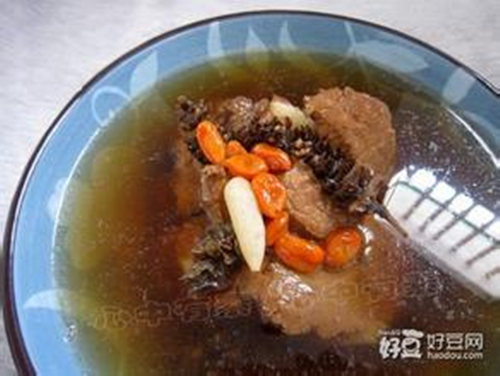 【原料】夏枯草10克、猪瘦肉50至100克,水适量。【制作】将以上原料共煲,肉熟后加盐少许调味。【服法】吃肉喝汁,每日1次。【功效】有清肝火,降血压之功效,适用于熬夜后头晕头痛及眼红者服用。
