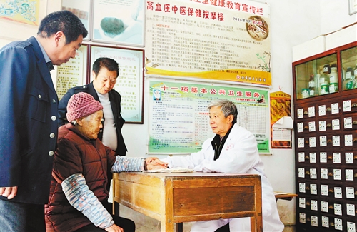 除了看病,李国光还要为村民提供公共卫生服务。比如,给村民建立健康档案,到老人家里做慢病随访,为新生儿做访视等。村医的收入由村医补贴、基本药物补助、公共卫生服务补助以及医疗收入组成,补贴和补助每个月只有1000多元。