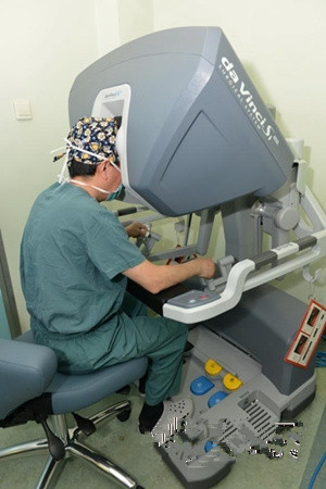 中新网健康频道了解到,外科手术机器人,又称“达芬奇(da Vinci)手术机器人”、“内窥镜手术器械控制系统”,通过使用微创方法,实施复杂的外科手术,是目前世界上最先进的手术平台。机器人手术目前主要用于普外科(肝胆、胰腺、胃肠道、甲状腺等)、心脏外科、胸外科、泌尿外科、妇科、小儿外科、咽喉头颈外科等。在手术时,外科医生可以远离手术台坐在操纵台中,双手握住手柄,同步控制患者体内的机械臂手术器械进行手术,所以完全不同于传统的直接将手伸入患者体内进行手术的概念,给外科领域带来了革命性的突破。