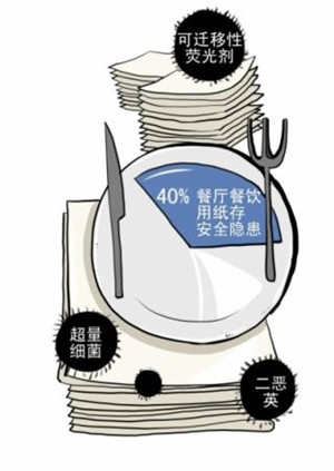 可迁移性荧光剂、脱墨剂、二恶英、超量细菌......餐厅的餐巾纸是否含有这些物质?昨天,中国烹饪协会在全行业发起了“中国餐饮业安全用纸清风行动”时发布的调研报告显示,我国近四成的餐厅餐饮用纸存安全隐患。