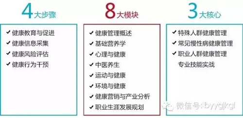 培训内容:健商与健康管理、人体基本结构和功能、健康相关的医学基础知识、影响健康主要因素、健康状况的信息管理、健康分析与风险评估、大众健康教育与健康促进、健康服务与健康营销、健康保险与健康管理、常见病的健康管理、特殊人群的健康管理等。
