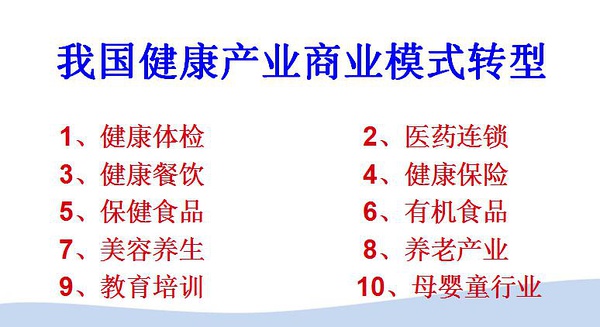 继蒸汽机引发“机械化时代”以及后来的“电气化时代”、“计算机的时代”和最近的第四波“信息网络时代”之后,当前已经到来是“健康时代”,而健康服务产业也将成为继IT产业之后的全球“财富第五波”。随着我国居民收入水平不断提高,消费结构升级步伐不断加快,人们对生活质量的要求日益提高,健康产业将显示广阔的前景。新时代正在颠覆着传统商业模式,健康服务业现在面医药连锁行业:要对从业人员开展专业培训,对周边人群从健康管理的角度给予日常防控和用药方案,做到丰富产品及服务;