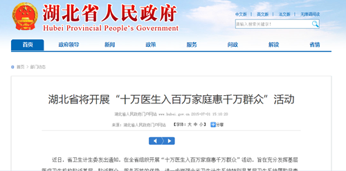 湖北省组织开展“十万医生入百万家庭惠千万群众”的活动